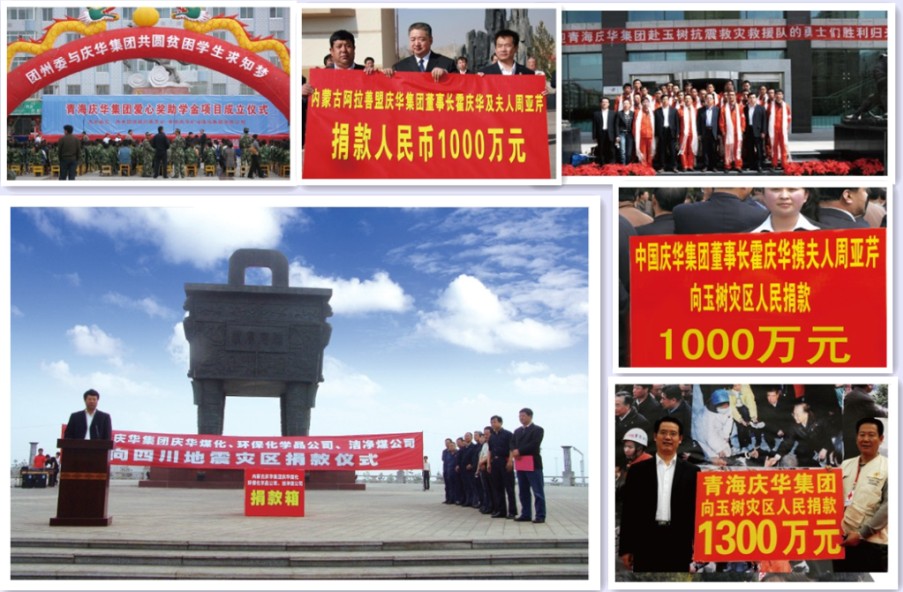 中國(guó)慶華集團(tuán)按照“關(guān)注社會(huì),奉獻(xiàn)愛(ài)心,扶貧濟(jì)困、慈善為懷”的原則,采取有效措施,使公司扶貧和公益捐助活動(dòng)深入扎實(shí)開(kāi)展,不斷為貧困學(xué)子、殘疾人、困難群眾、災(zāi)區(qū)人民送去愛(ài)心和希望。多年來(lái),中國(guó)慶華集團(tuán)不斷以各種形式直接資助幫扶社會(huì)團(tuán)體及個(gè)人,資助總額已超5億元。
